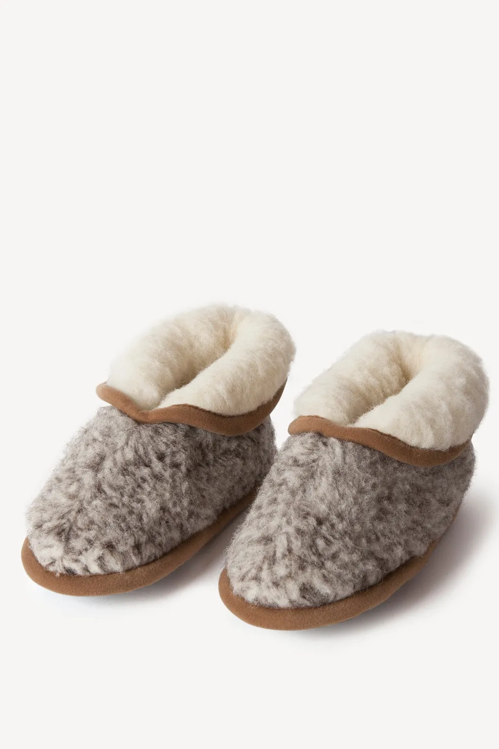 A must have hygge accessory. 100% merino wool slippers with a fleecy warm ankle cuff in a luxurious gray. Cozy, breathable, and functional with rubber gripped soles, these slippers can be worn with the cuff pulled up or rolled down. Handcrafted in Lithuania.