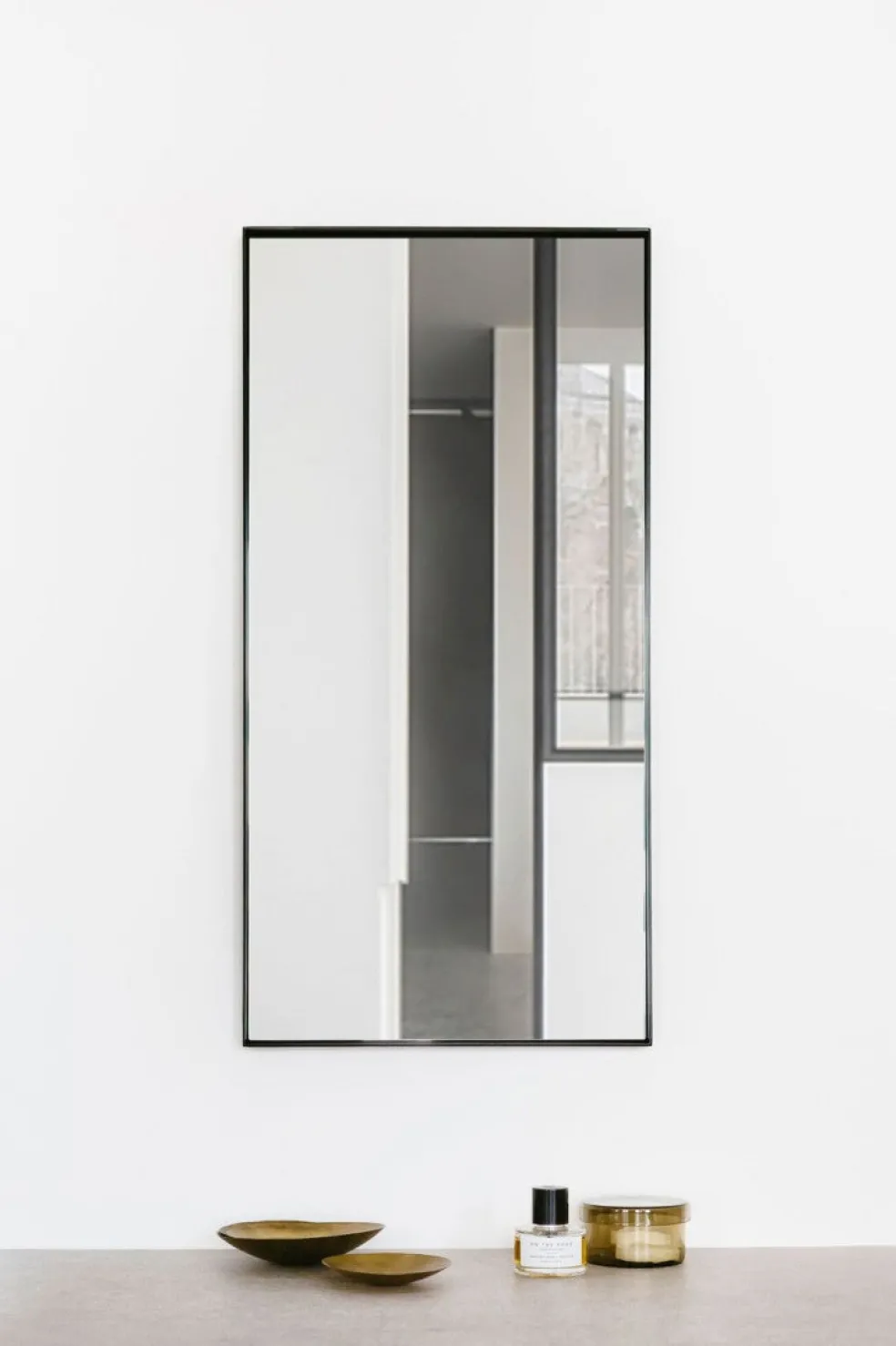 Edie is a classical piece that fits every interior. The refined design and clean shape allows this tall Edie mirror to brighten any room in your home or office. Choose between an elegant aged brass or black steel.