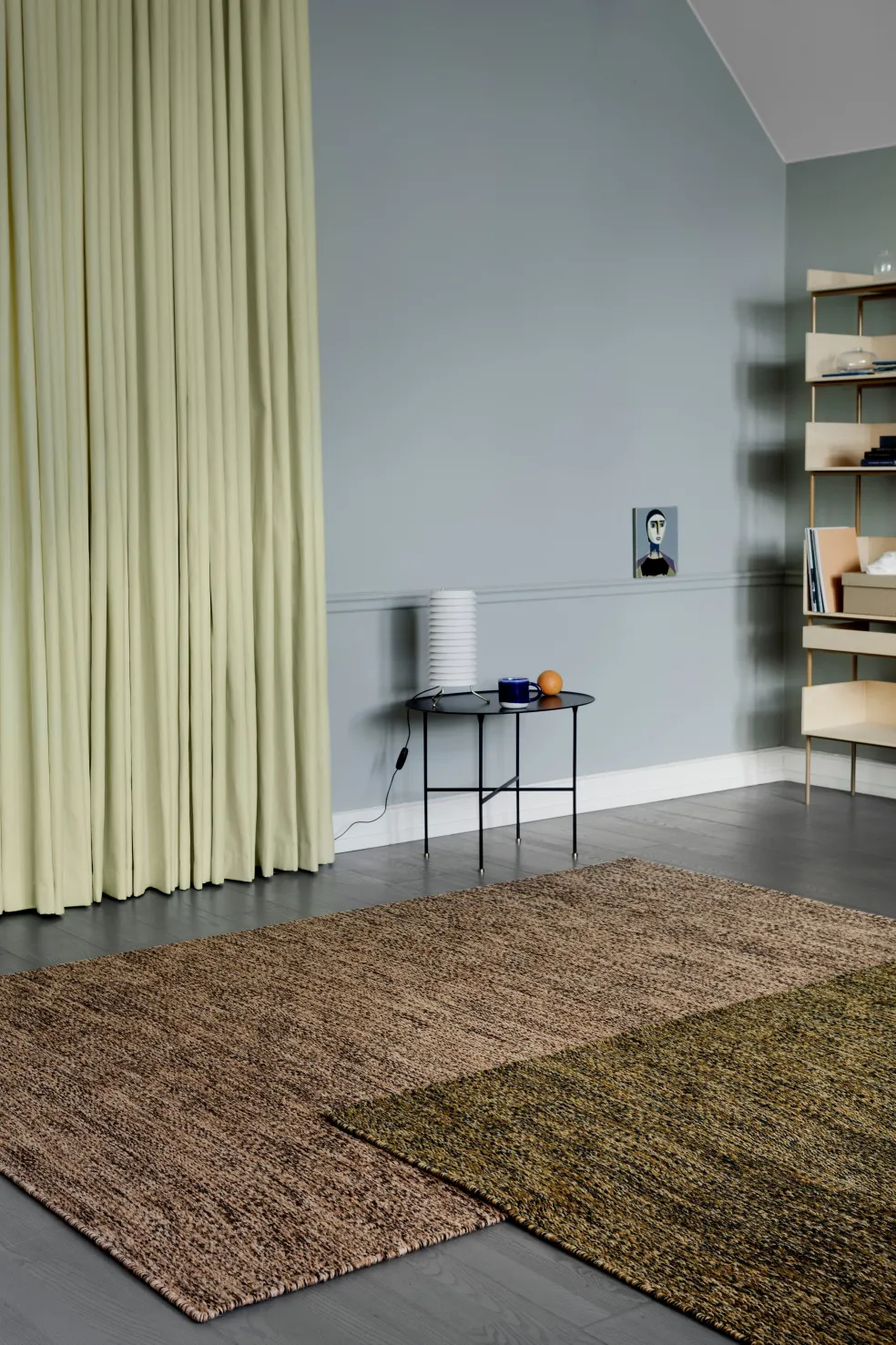 The Gimle is unique in that it is reversible! Designed by Jens Landberg Schrøder, this rug is a hand-woven New Zealand wool on cotton warp. The design is made up of two shades woven tightly together to create a shimmering look with lots of movement. It is a very thick flat pile rug, perfect for under a dining table.