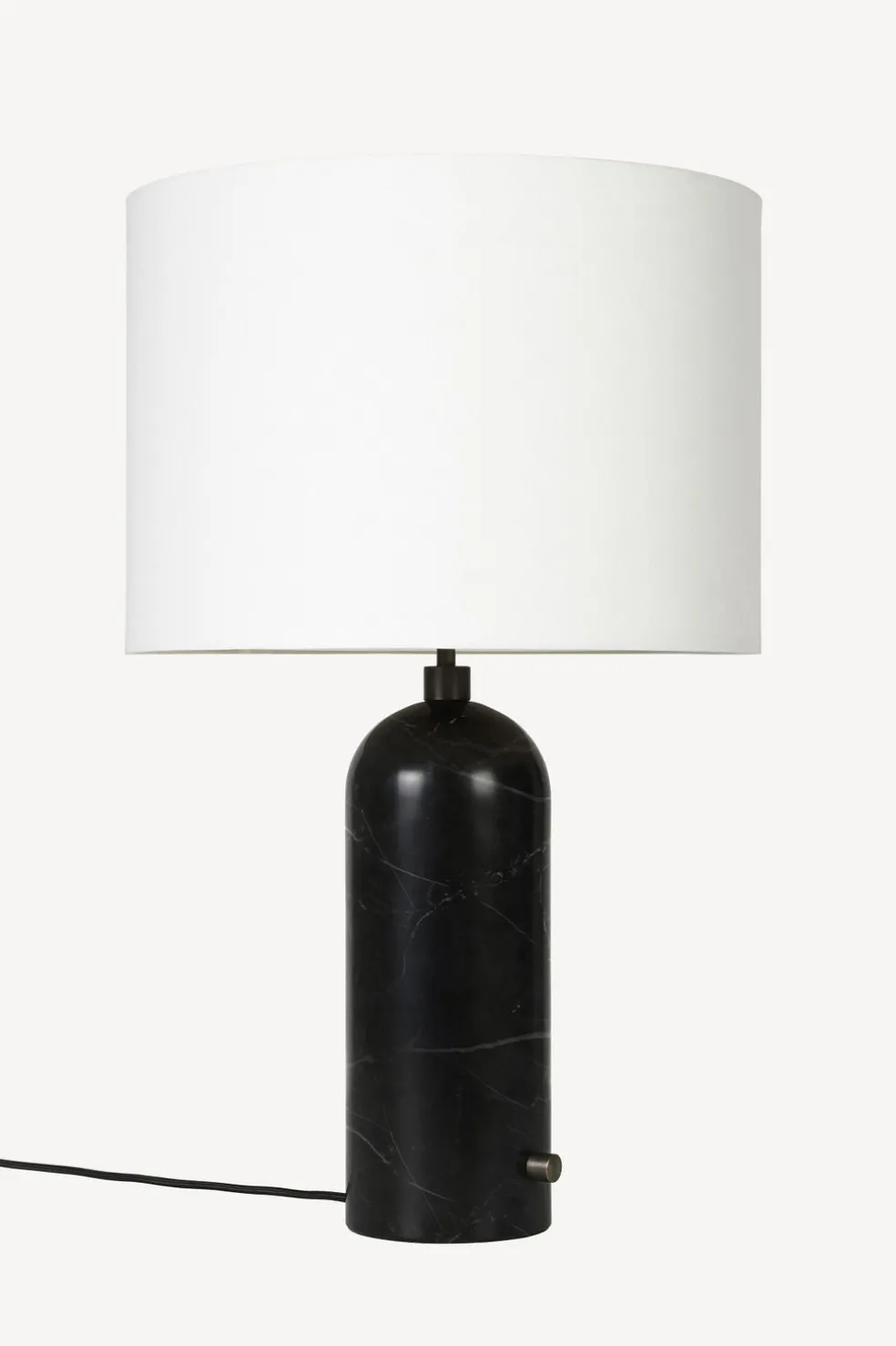 The definition of a statement piece, this unique table lamp brings warmth to any side table or desk. Marble is a beautiful natural material which automatically enhances the feel of any home. Plus, the natural marbling in this table lamp will be slightly different every time, making this design all the more fun. Providing a warm glow, the Gravity table lamp is available in a white, grey or black marble or in blackened steel with a canvas or white shade.