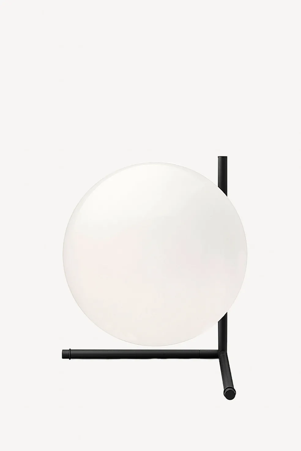 Delicately balanced and provider of dispersed light through an opal, blown glass globe, this unique table lamp is framed in plated steel. Choose your favorite steel color, place on a side table or desk, dim to your preferred mood light, and enjoy this radiant work of art.