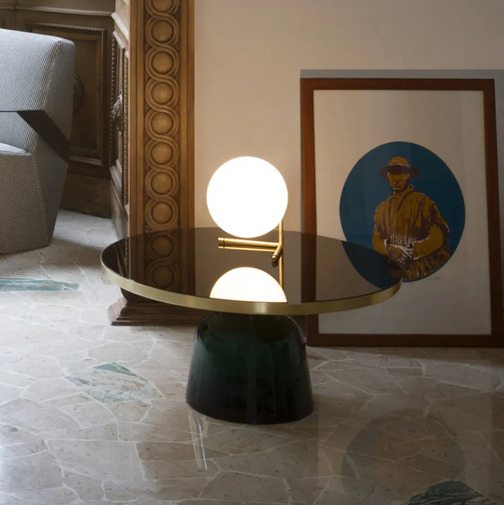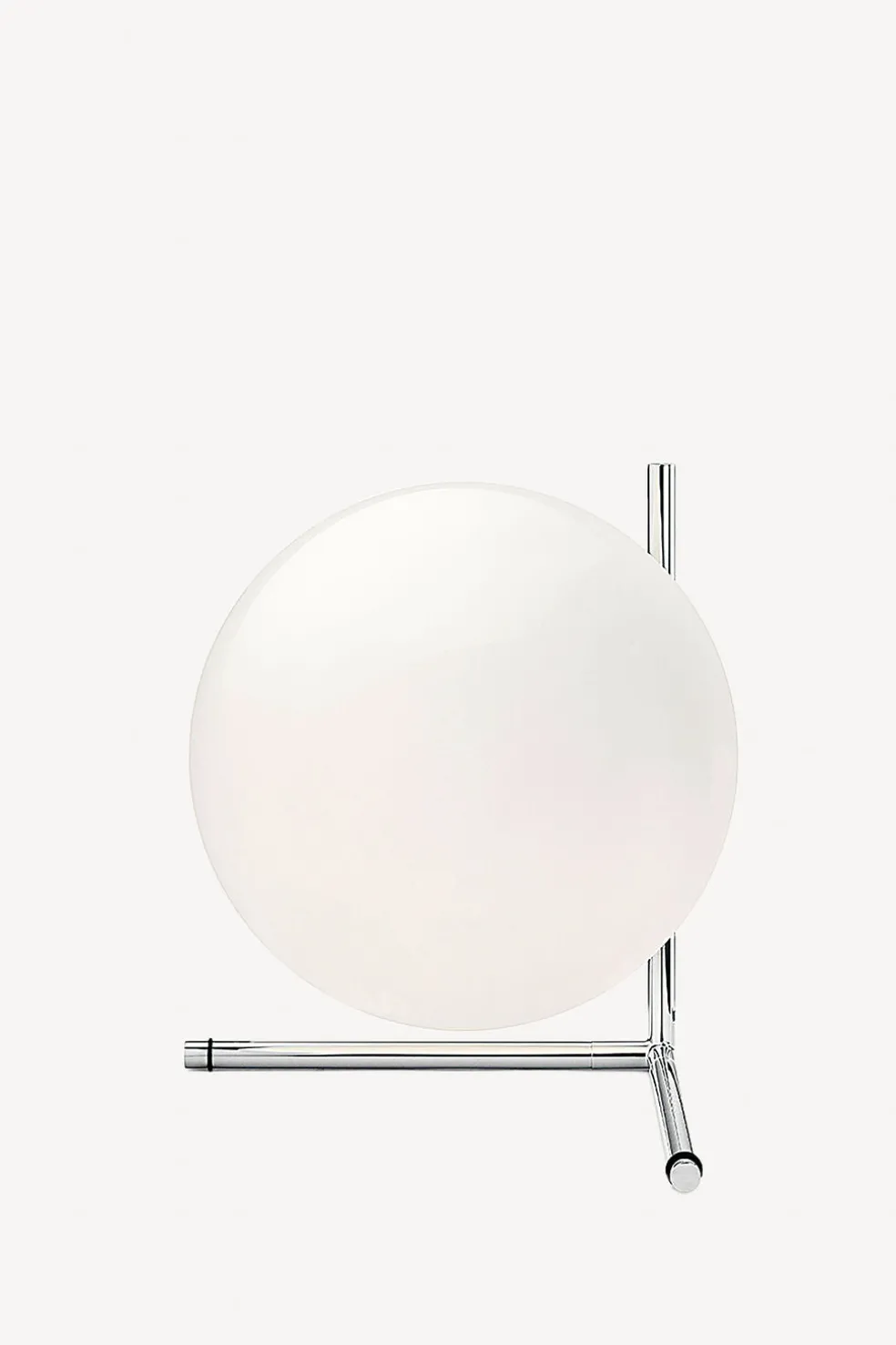 IC Lights designer, Michael Anastassiades, found inspiration in contact jugglers, who gracefully spin orbs on their bodies. Anastassiades conjures this mesmerizing motion with a collection of lamps in which the luminous blown-glass diffuser artfully projects from a steel frame.