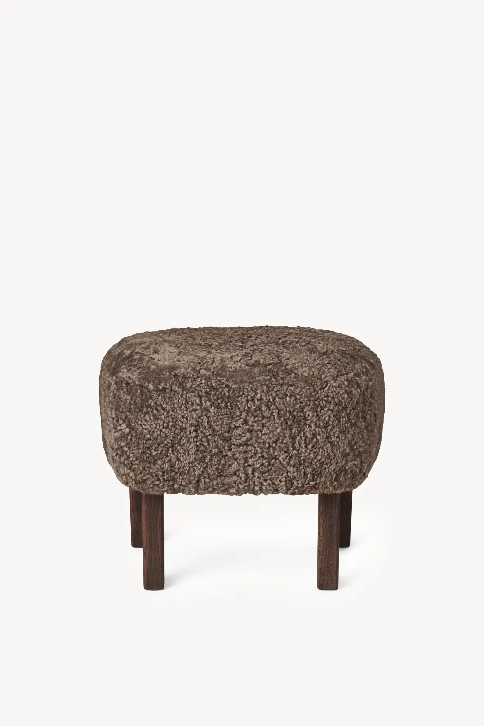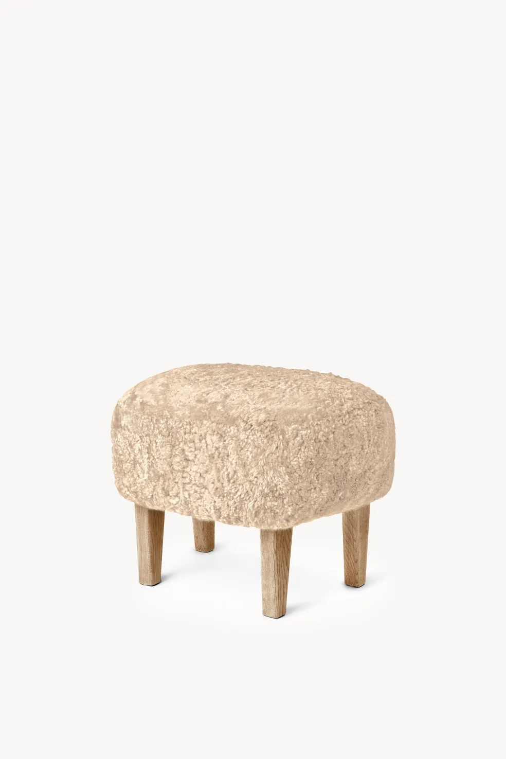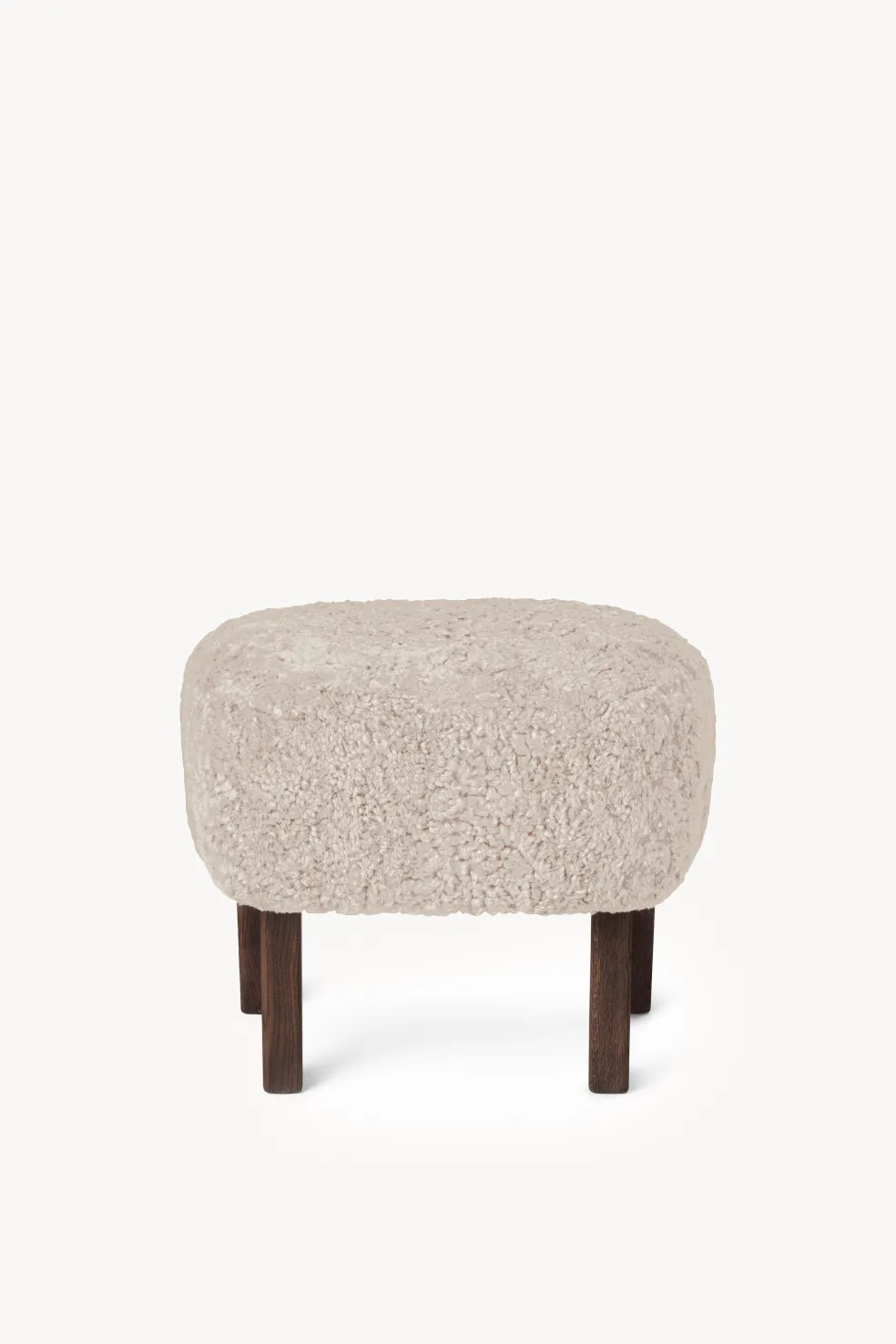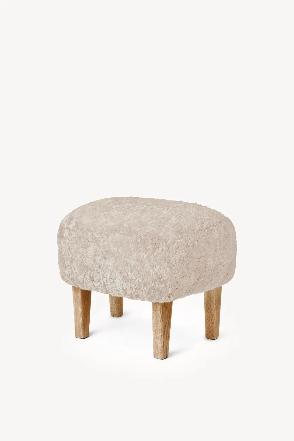 Upholstery options: Natural Sheepskin in various colors. Hygge Life’s favorite? Moonlight sheepskin with dark oak legs.
