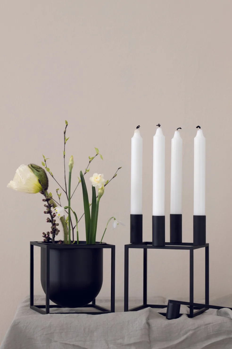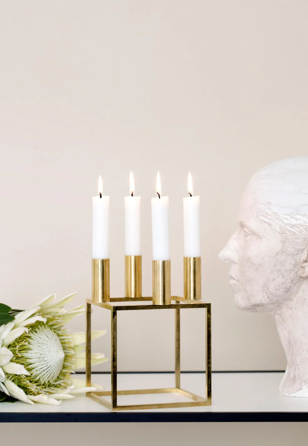 Just as Mogens intended, the cube-shaped Kubus 4 candleholder gathers people around the table with its distinguished shape and simple light creating a cozy, contemporary ambience.