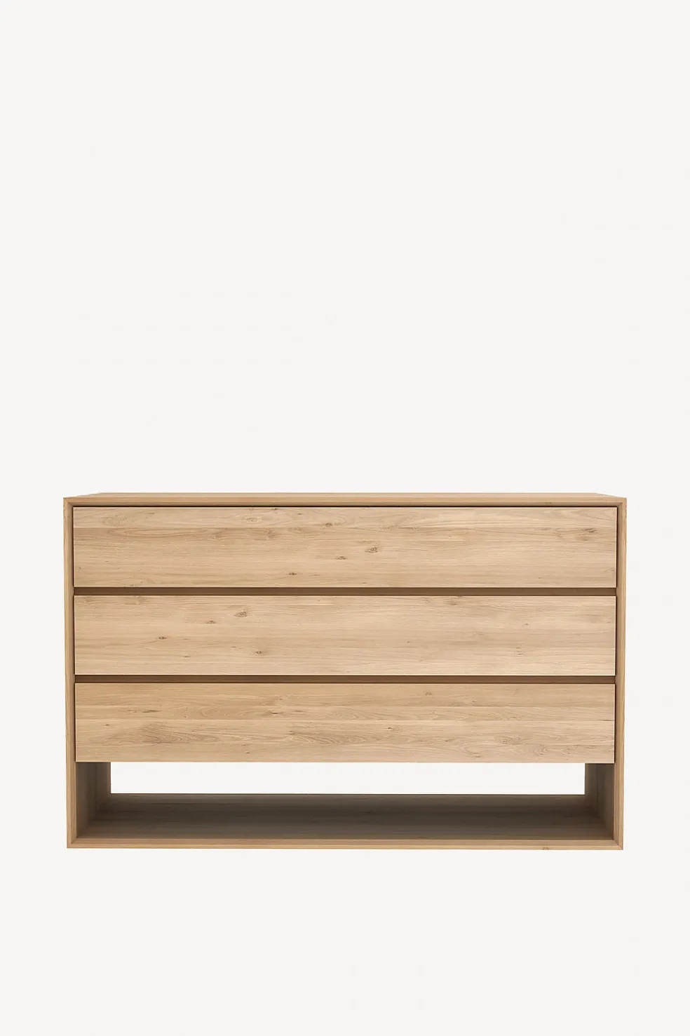 Featuring three drawers with plenty of space inside, the Oak Nordic chest of drawers combines refined Scandinavian design with the purity of solid wood. The bevelled edges accentuate the grain of the wood, bringing a sense of nature indoors.