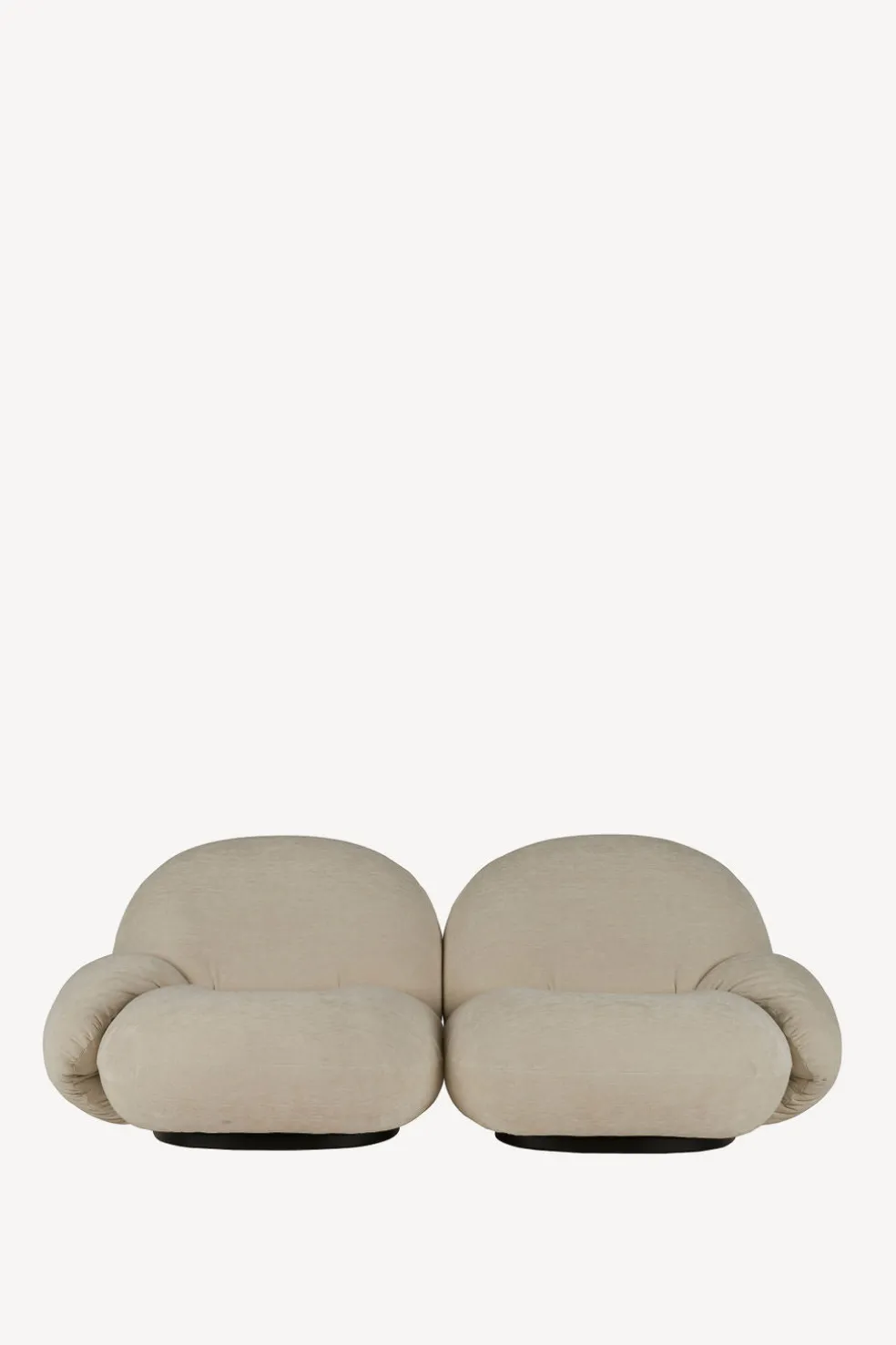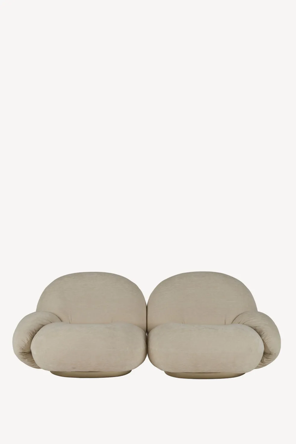 An addition to the original Pacha Lounge Chair, the Pacha Sofa equals three times the coziness! With countless upholstery options, there is room for creativity with this design. It is available with or without armrests, and with the option of no armrests, armrests only on the outside, or armrests on the outside and throughout the middle. The sofa comes in either a 2, 3 or 4-seater with a pearl gold or black base.