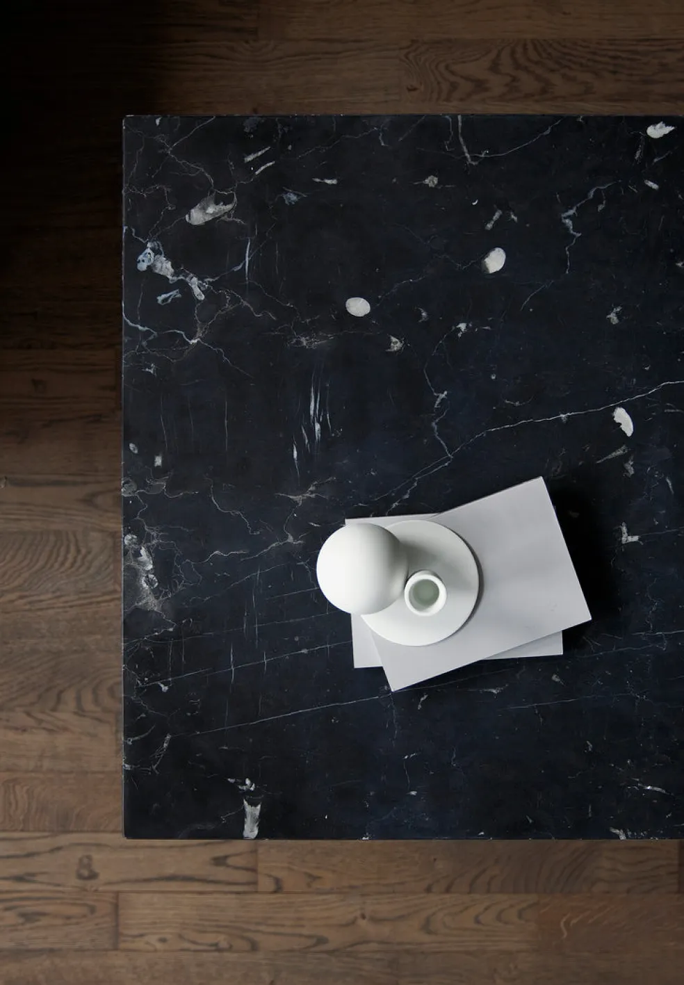 Black marble block tables designed by Norm Architects for MENU, Copenhagen. The Plinth table series is modern and sophisticated and pays tribute to the natural beauty of the marble. Use as side tables in a living room, beside your bed or as a coffee table.