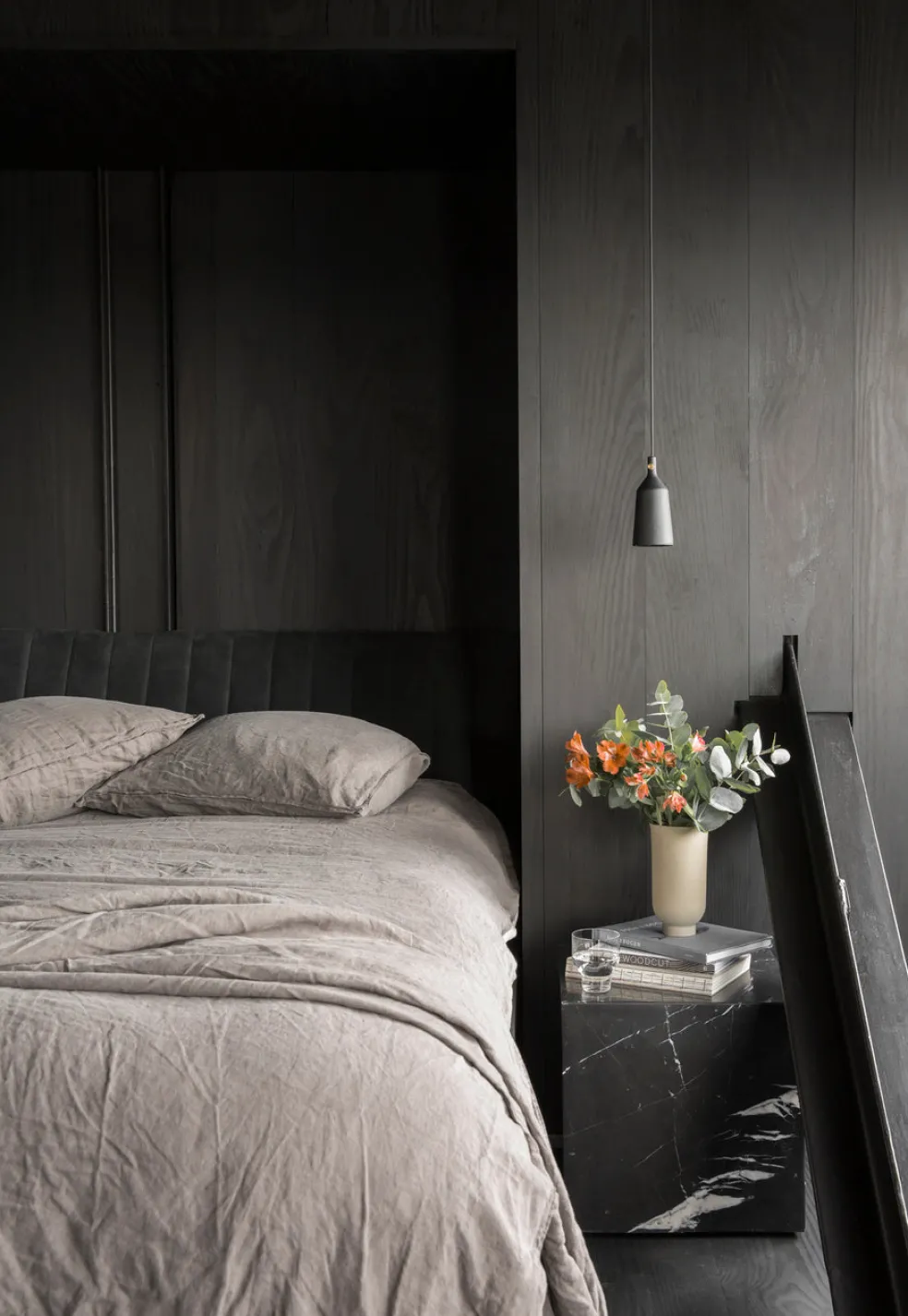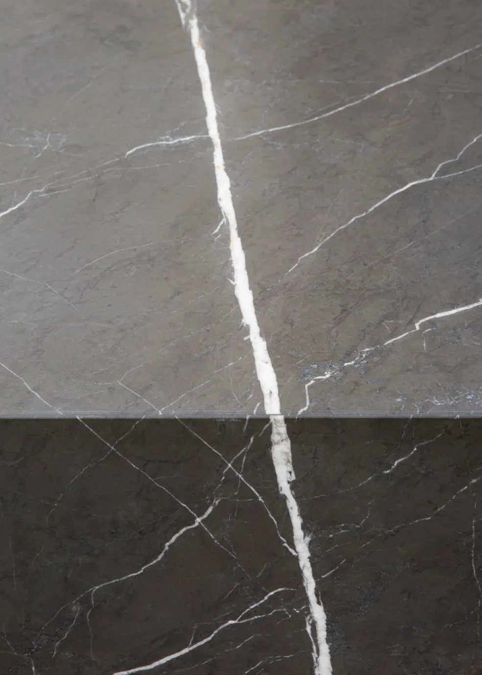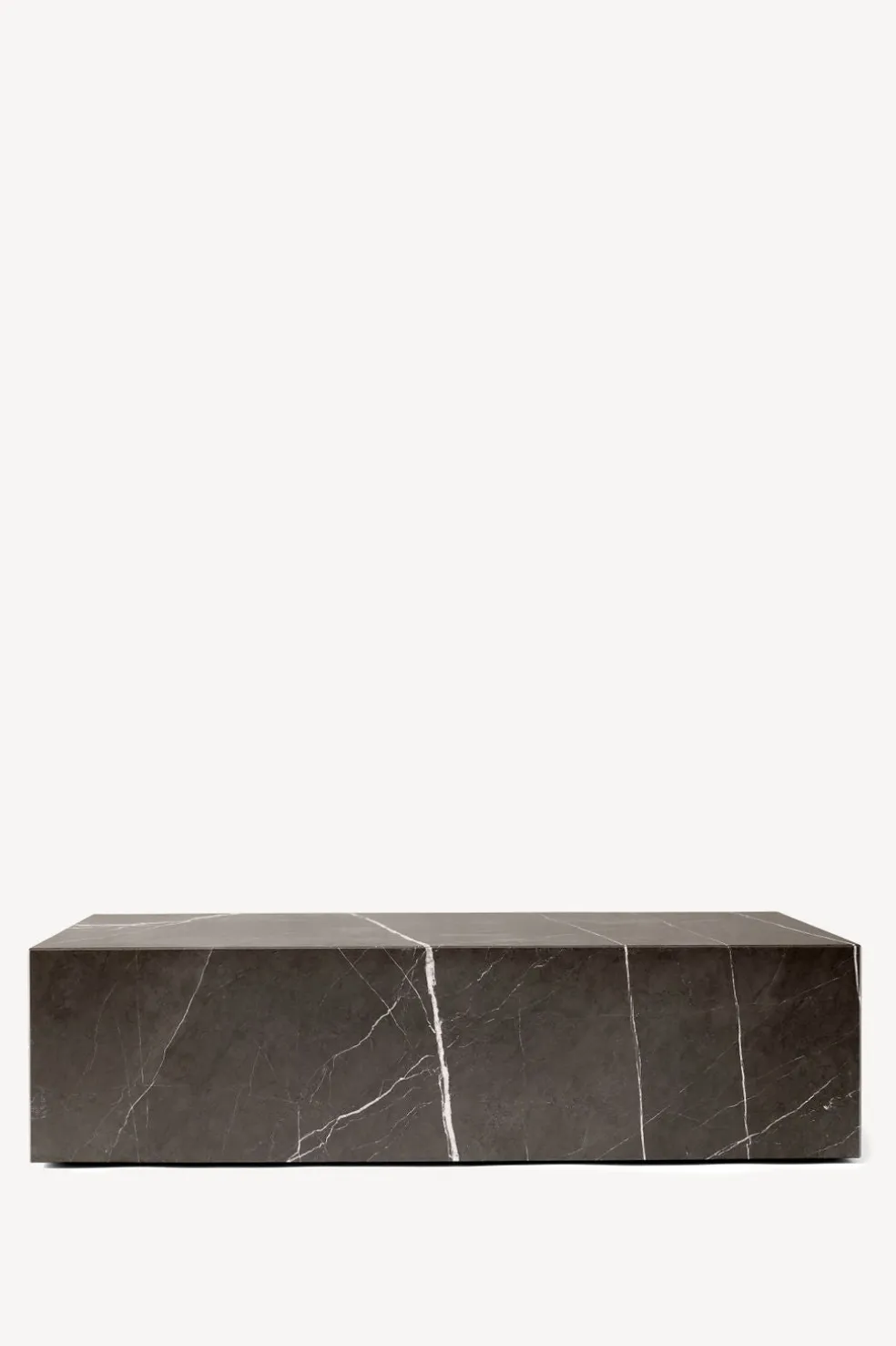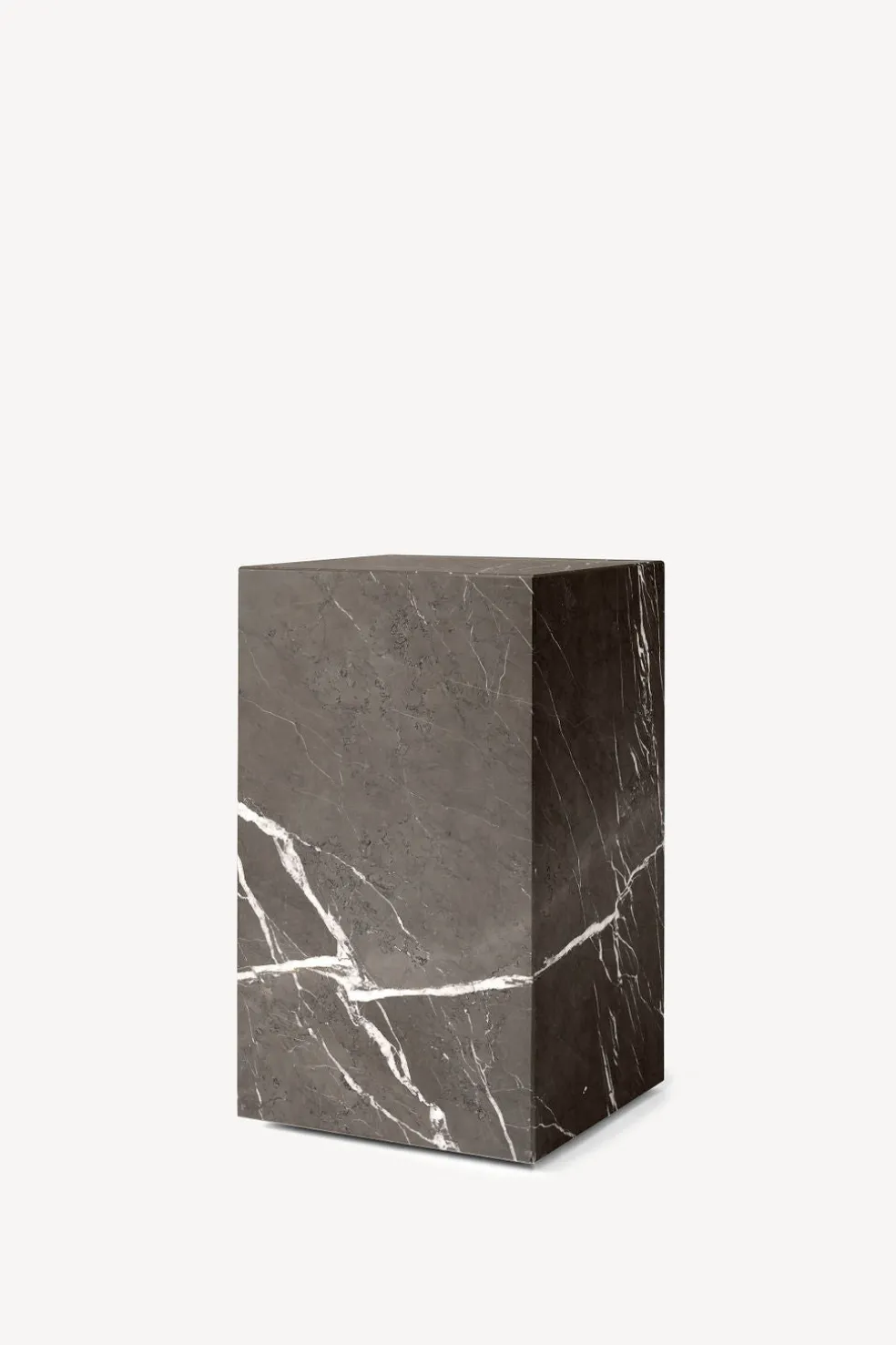 Grey marble block tables designed by Norm Architects for MENU, Copenhagen. The Plinth table series is modern and sophisticated and pays tribute to the natural beauty of the marble. Use as side tables in a living room or beside your bed or as a coffee table.