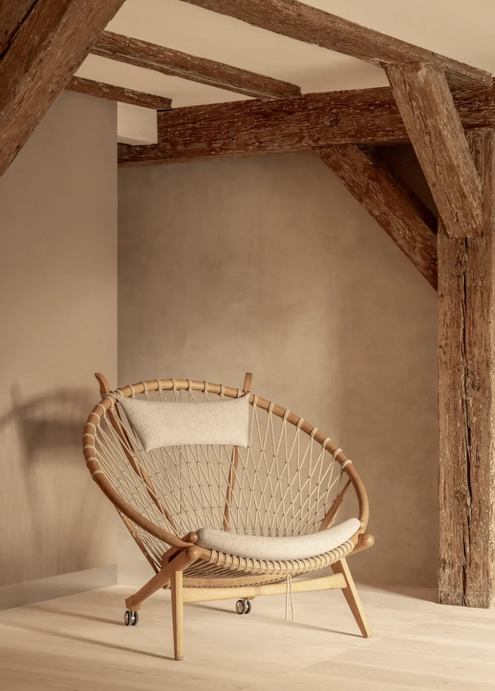 It was a longtime dream of Hans J. Wegner to produce a wooden structured chair based on one of nature’s most basic and most graceful shapes, the circle. While he worked on this design since the 1960s, The Circle Chair finally came to fruition when he was 72 years old. The process of bending wood into a perfect circle is not easy but the result has become the manifestation of one of Wegner’s most visionary projects. Whether placed in a reading nook, a serene corner, or as a statement piece in your living space, the chair’s organic design radiates warmth and calm, encouraging moments of reflection, connection, and relaxation. Bring this iconic chair home and experience the perfect balance of form, function, and hygge living.