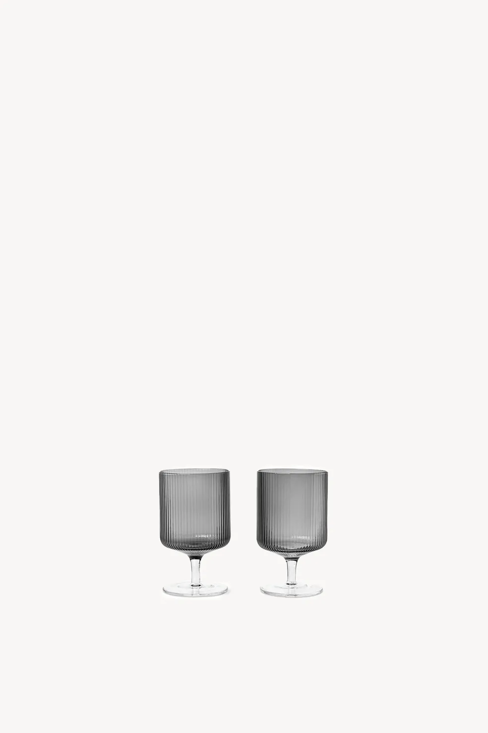 Ripple Wine Glasses are a lovely example of moulded and mouth-blown glass. This process of design gives a polished and distinctive appearance with a ripple surface, while showcasing artistic creativity. The Ripple Wine Glasses come in a set of two and are offered in clear or smoke hue. This lovely, low profile stemware adds character and charm to any occasion. Pair them with other pieces in the Ripple Glassware collection for a cozy and cohesive dining experience.