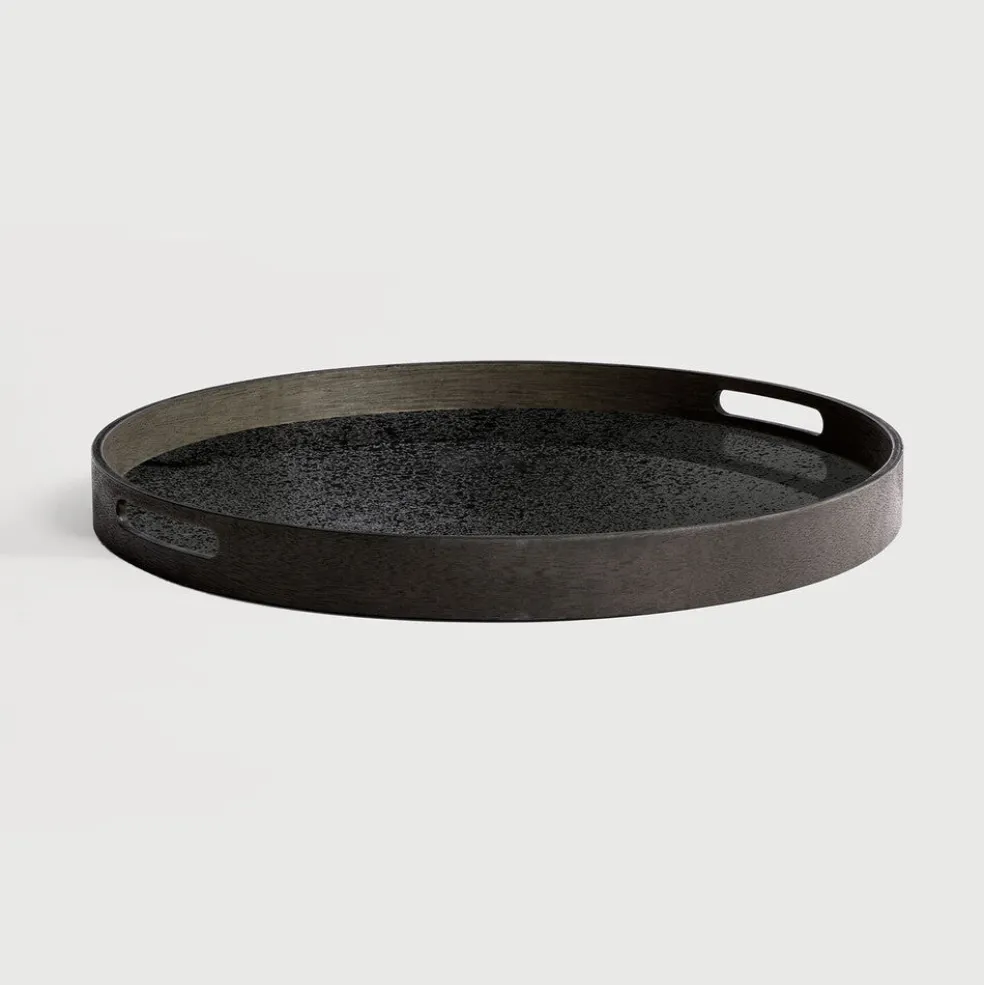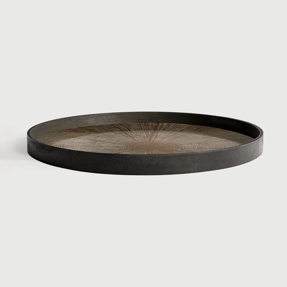 These trays from Ethnicraft fit onto the round tray side table. There are various patterns and sizes available depending on your needs.