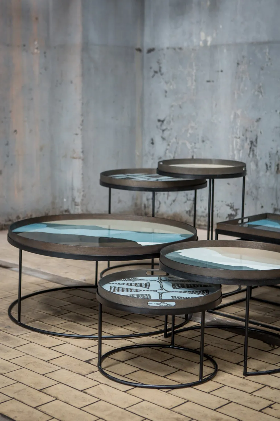 The Round Tray Coffee Table set is extremely versatile, serving as a traditional coffee table with the optional ability to mix and match different decorative trays and create personal pieces that are uniquely yours.