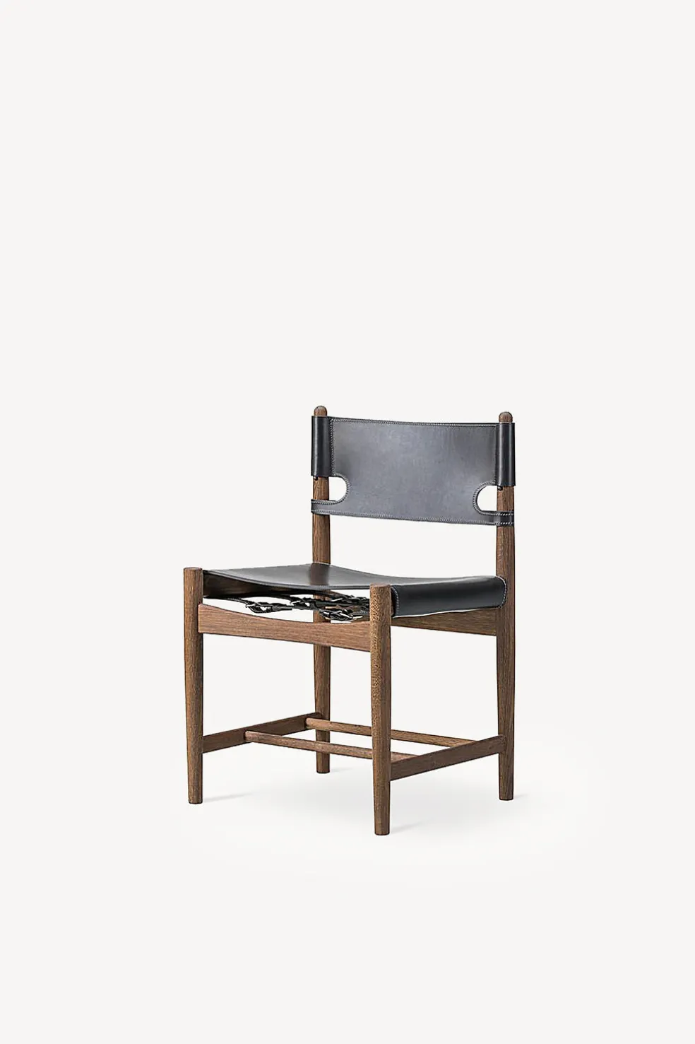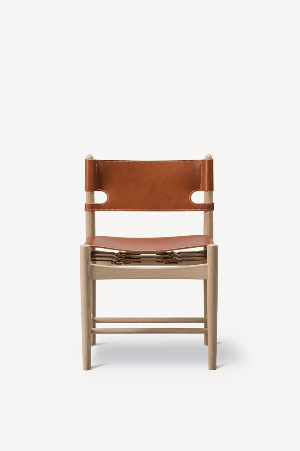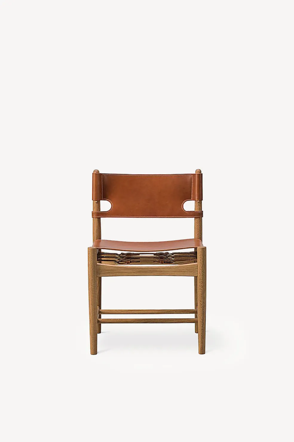 Based on the same design as the iconic Spanish Lounge Chair, this dining chair version has quite a strong presence, with its solid oak construction and sturdy, high-quality saddle leather. Over time, as the leather expands, the adjustable straps can be tightened. Allowing you to sit securely and comfortably from day one – and for the rest of your life. One of Mogensen’s most celebrated designs, it reflects his unique angle on modernity. It is also available with arm rests.
