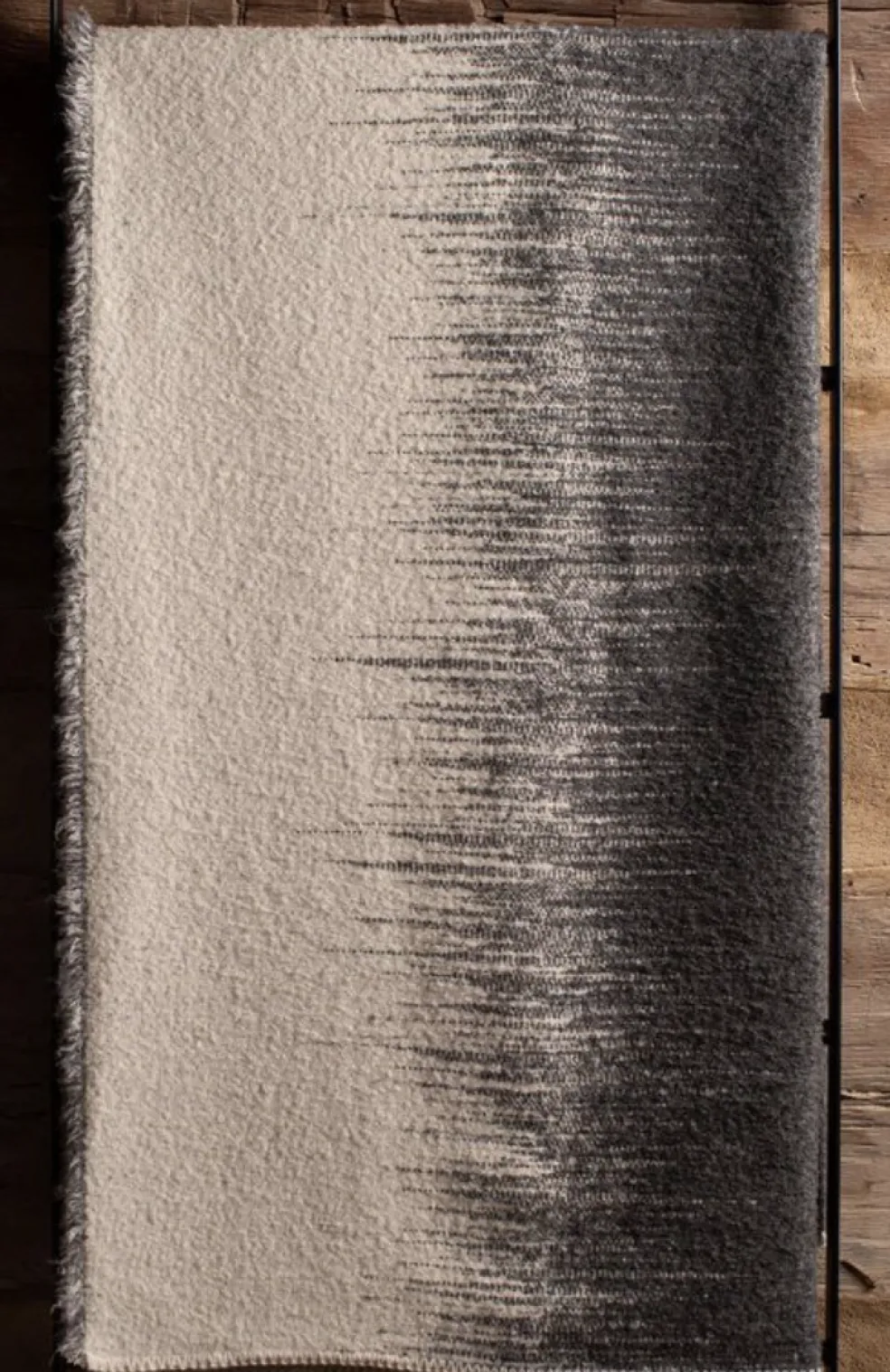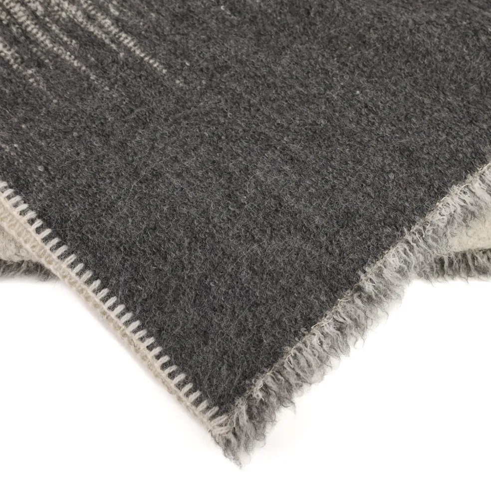 A fun design, this blanket is reversible, and its pattern switches colors from inside to out when flipped back and forth. It features an ombré design that is beautifully eye-catching both when neatly folded and spread out. It is the epitome of warmth and comfort made from mostly all natural alpaca wool.