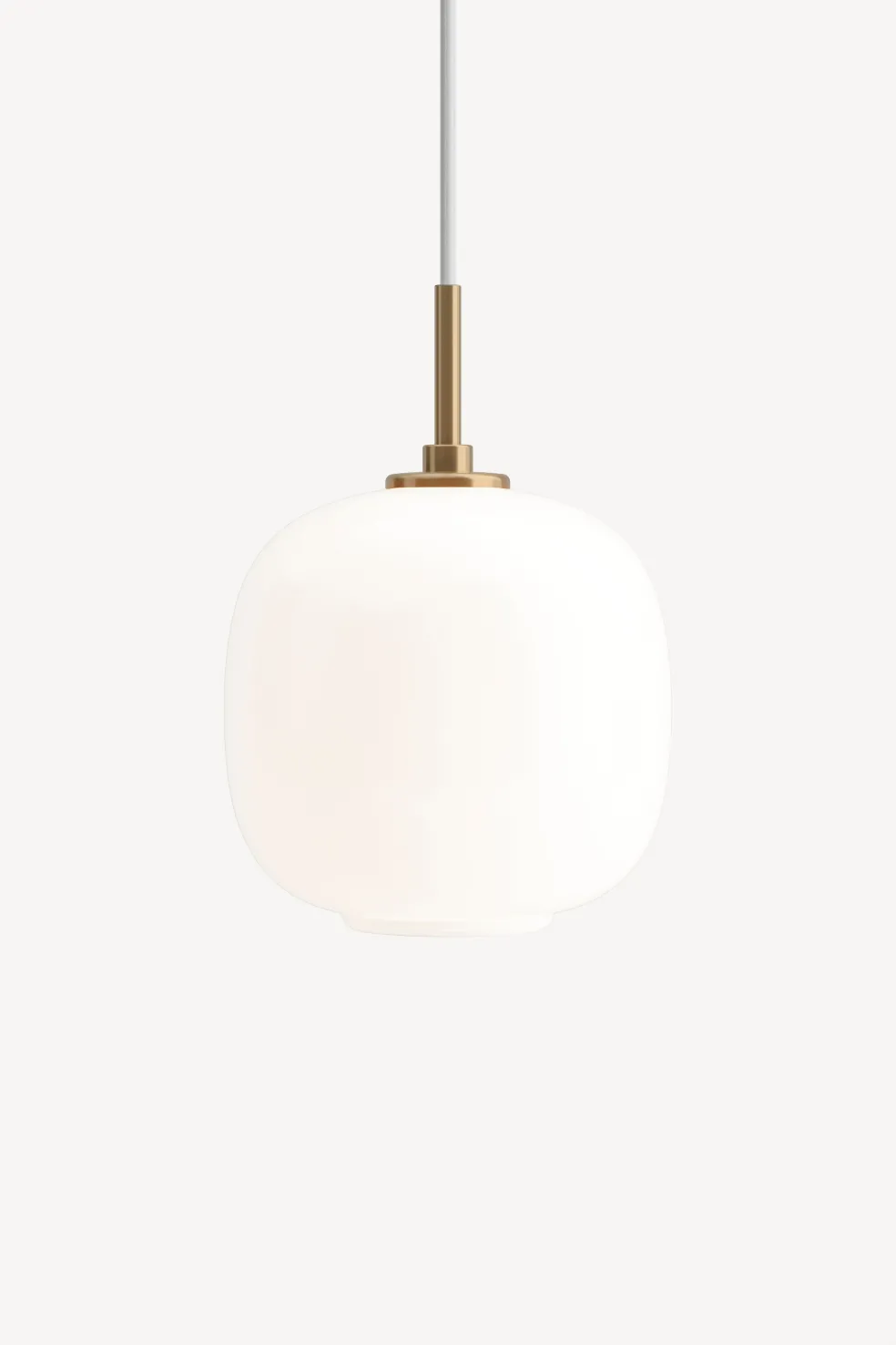 The Louis Poulsen Radiohus Pendant, designed by Vilhelm Lauritzen in the 1940s for Copenhagen’s Radiohuset building, is a timeless example of Danish modern lighting. Its hand-blown, three-layer opal glass shade emits soft, even illumination, while the brushed brass suspension adds a warm, refined touch.The open bottom provides direct downward light, making it ideal for dining areas, living spaces, or entryways. This pendant blends classic elegance with functional design, enhancing both contemporary and traditional interiors.