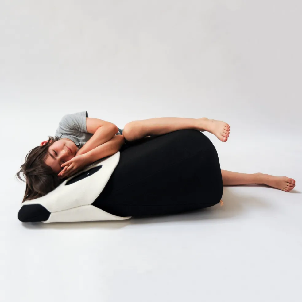 Panda, from EO’s Zoo Collection, is a bright and playful cuddly toy crafted in oversized scales. Playfully stand the life-sized Panda bear in a child’s room or lay it down as a plush floor pillow.